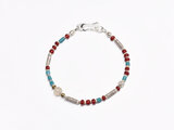 カレンシルバーと古代瑪瑙、濃赤とターコイズブルーホワイトハーツ、oldオリッサブラスを繋いだブレスです。