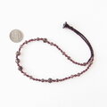 カットがキラキラと輝くスモーキークォーツとガーネットをダークレッド色のポリエステルコードで繋いだシックな雰囲気のネックレスです。