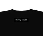 (コメント)Bubbly World:これはシャボン液とスミを混ぜてできた液で描いた(正確にはシャボンが描いた)軌跡をTシャツの図案にしました。泡がはじける瞬間が形になって残ったものです。他の作品や制作している様子はホームページやYotubeでご覧いただけます。