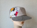 リネンのフラワープリントと細かい千鳥格子、ベージュ無地の3種によるキャスケット☆