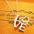 シルバー925 猫ネックレス LOVEの文字と猫とハートを組み合わせたモチーフ キュービックジルコニア 18Kゴールドメッキ