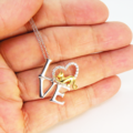 ハートにはキュービックジルコニアを敷き詰めてあり、猫はキラキラに輝く18Kゴールドで加工してあります