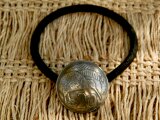 ニュージーランドの20cent裏側のデザインをヘアゴムと芯合わせしコンチョ型に加工した作品です。