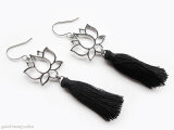 蓮の花の下で黒色のタッセルが揺れるピアスです。