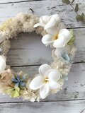 白のプルメリアを4輪使って、白のモスと合わせた夏に飾っていただきたいリースです。