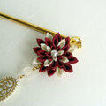 つまみ細工<夏>花と蝶のかんざし ワインレッド 《浴衣、七五三、成人式、着物》