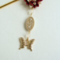 お花と蝶はアンティーク調ビーズとふたつのスモーククリアビーズでつなげました。