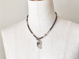 カレンシルバーのトップとパープルアンティークビーズ、グーズベリーとラブラドライト、ハーキマーダイヤモンドを繋いだネックレスです。