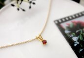 天然石のネックレス ■ モザンビークガーネット ■ 立て爪 ラウンド 3mm 14KGF
