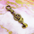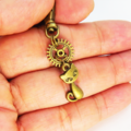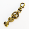 アンティークゴールド 猫と歯車のシンプルで可愛いファスナーチャーム キーホルダー バッグチャーム 金具変更可
