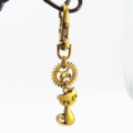 ちょこんと可愛い、猫と歯車のアンティークゴールドキーホルダー
