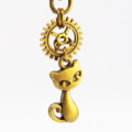 アンティークゴールドの温かみのある輝きが愛らしい猫と歯車のシルエットを際立たせるキーホルダーです