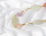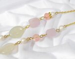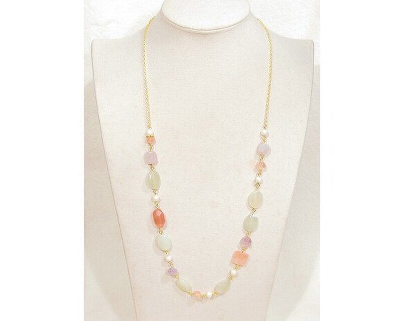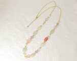 プレナイトやアメシスト、ストロベリークォーツの天然石を使ったロングネックレスです。アメシストはフラワーカットのものも使っています。4cmのアジャスターが付いています。