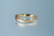 繊細な糸で紡がれた織物のようなリングのテクスチャーも、ルビーにとてもマッチしていて、