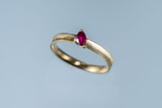 リングの中央がやや凹んでいることで、ルビーのサイドからも、たっぷりと光を取り込むことができています。