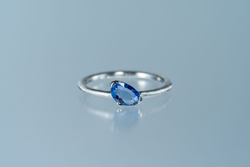 爽やかで上品なブルーが印象的なサファイアをシンプルなリングに仕立てました。