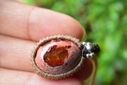内包されたオパールは、溶岩を思わせる、鮮やかなレッドオレンジに