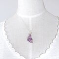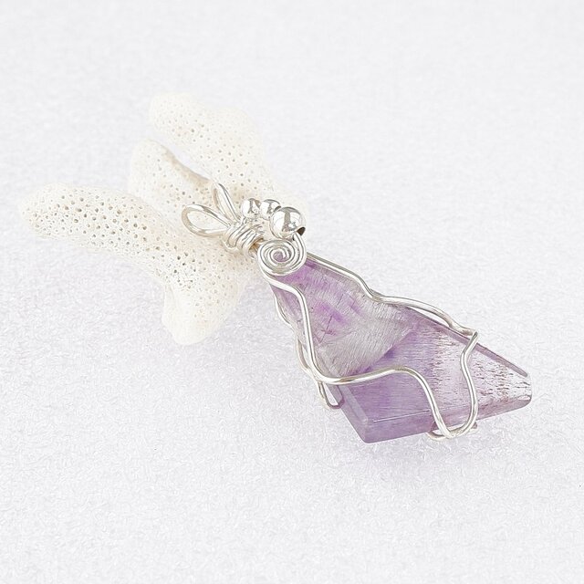 シャープな板状のカットの水晶を銀線でペンダントに仕上げました。