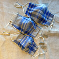 SALEブルーチェックのコットンリネン エアーマスクM・Lサイズ