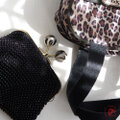 ばあば作、大きめ・総ガラスビーズのスクエアがま口(pantera・1519)
