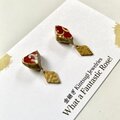 有田焼 陶片 x 金継ぎ ピアス イヤリング (レッド陶片、真鍮ダイヤ)