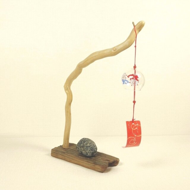 【温泉流木】流木風鈴スタンド飾り石付き001ふんわり上昇くねくね枝 R030032