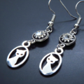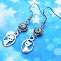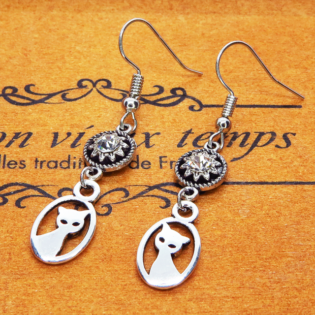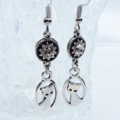 シルバーカラーの可愛い猫モチーフとラインストーンのモノトーンピアス