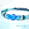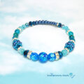 夜空のようなメタリックブルーのガラスや、発色の綺麗なラピスラズリのパールなど、魅力的なブルーのビーズを集めたブレスです。