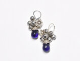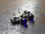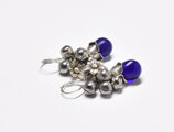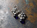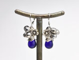 ダークブルーウエディングビーとたわわな鈴、お花カレンシルバーのピアス