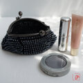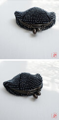 ばあば作☆☆総ガラスビーズのがま口(ヘマタイト・1493)