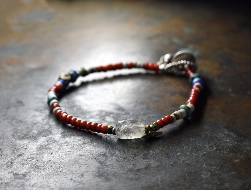 ヴェネチアのアンティークビーズと古代水晶の味わいが楽しめるブレスです。
