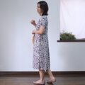 【XS-LL受注制作】アーミッシュ風シンプルワンピース◇ネイビー・マーガレット柄ピンクアクセント(薄手生地)