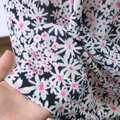 \中心のピンクがアクセント。ネイビーの地にホワイトのマーガレット柄です。サラサラとした透け感のある夏用素材/
