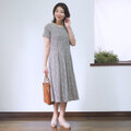 ┗ポケットやファスナー、ボタンなど余計な装飾を一切はぶき、シンプルを極めたワンピースです。その分小物やアクセサリー、着る人を引き立てます。