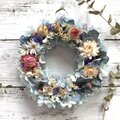 【フラワーギフトに!】ドライアジサイの水色リース ♯フラワーギフト ♯ドライフラワー ♯水色