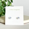 レインボームーンストーン×シルバー シンプル立爪ピアス