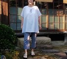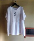 肌触りの良い 薄手の白絣と白い無地の生地を組み合わせて チュニックを作りました。