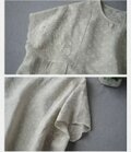 リネン100%贅沢総刺繍ポケット付きシンプルな大人可愛い五分袖ワンピース♪ -