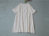 リネン100%贅沢総刺繍ポケット付きシンプルな大人可愛い五分袖ワンピース♪ -