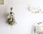 スワッグには掛けるための紐が付いているので、届いたらすぐに、壁にかけたり、あるいは棚の上の瓶に刺したりして飾っていただけますよ。