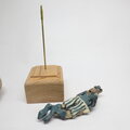 焼成で直立させるために、いつも土台と一体型のポーズに限定されていましたが、背中に筒状の引掛け部分を付けることで、いつもより自由なポーズや、浮遊感を出すことができるようになりました。