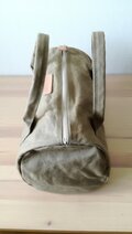 パラフィン(防水防汚)加工された生地を使用した、多機能のしっかりしたボストンハンドバッグです。