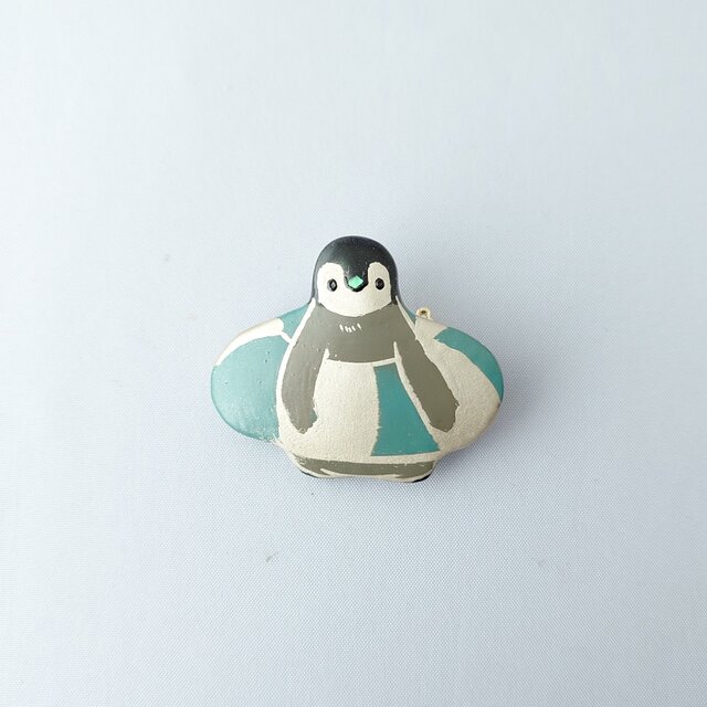 浮輪 皇帝ペンギンひな 漆ブローチ