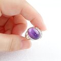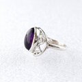 鮮やかな濃い紫色のアメジストをアシンメトリーなデザインのリングに仕上げました。