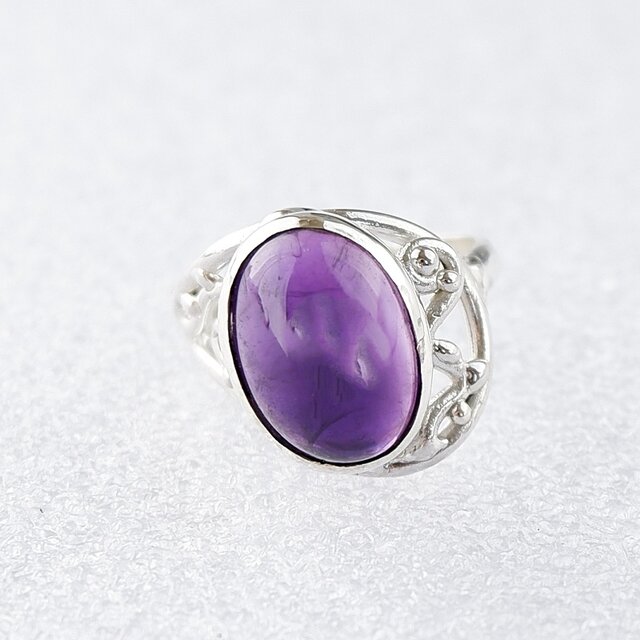 天然石アクセサリー シルバーリング 個性的 一点物 パワーストーン 手作り お守り 2月の誕生石 紫水晶 銀の指輪 指輪 彫金 天然石ジュエリー 秋 ブドウ 葡萄 ワイン 悪酔いを避ける石 バッカス 酒神