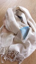 長いシーズン使える、コットンやシルクなどをたっぷり使ったストールを織りました。