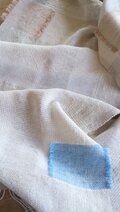 なかなか手強い個性がある糸たち。糸の張りなどを調整しながら、楽しく織りました。伸び縮みの関係で横幅が一定ではないですが、巻くと気になりません。