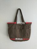 ファスナーバッグ口が40cmございますので、ザックリ入れてお使い頂くには程よく、そしてバッグの中身も見渡せます。