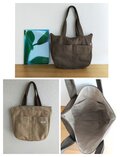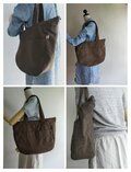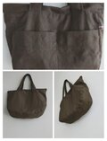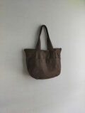 少し目のつまったキメの細かい、味わい深い色味のカーキブラウンリネン生地で、ショルダーバッグを作りました。