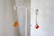 少し弧を描いたシルバー線の先に、琥珀のキューブがきらきらと